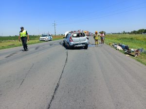 Esta tarde a las 14:30 horas, se produjo el vuelco de un automóvil Renault Sandero, en el kilómetro 437 de la R33, frente al cementerio parque.