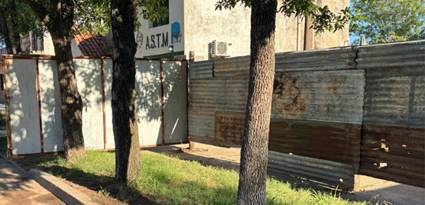 Al perímetro frontal del terreno ubicado sobre calle Alberti, entre Pueyrredón y Pringles, que ocupa buena parte de la vereda con sus chapas que ofician de tapial, se le suma la apertura de un portón que anula por completo el paso.