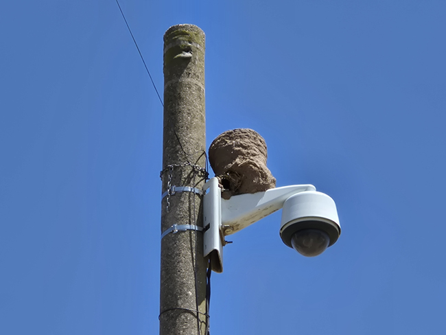 Y no es solo eso, lo hicieron justo sobre el soporte de un domo de seguridad perteneciente al Centro de Monitoreo Municipal. Cualquiera supondría que tuvieron en cuenta todos los aspectos, sin embargo, al parecer, dado el escaso movimiento, al menos una de las casitas, suele estar ocupada por otras especies de pájaros; también representando otro aspecto del comportamiento humano moderno.