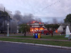 En cuestión e minutos, tal como muestran las imágenes, el edificio donde funcionaban Punto Digital y la Escuela de Artística, se vio totalmente cubierto por el fuego.