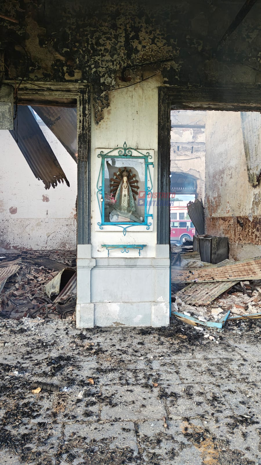 La Virgen resistió las llamas, la alta temperatura del fuego, incluso las partes de la estructura que fueron cayendo. Su presencia, inmaculada, quedó erguida como una muestra del poder de la Fé.