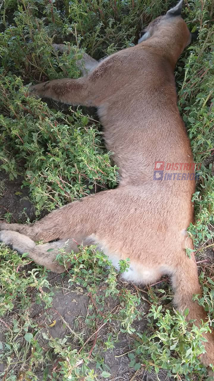 El lector que nos hizo llegar esta imagen, contó a Distrito Interior que el ejemplar fue embestido ayer sábado a las 7:30 horas por una camioneta que circulaba desde Arenaza hacia Roberts por la Ruta 68, en el kilómetro 31.