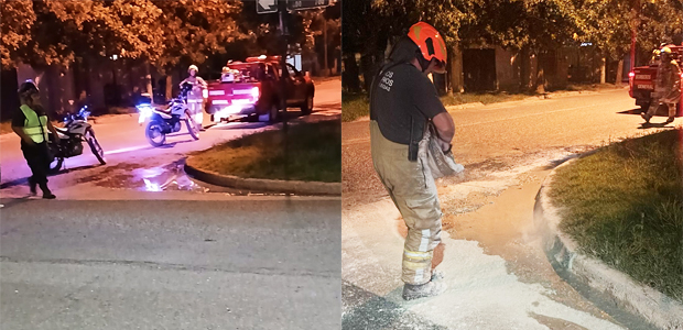 Por el derrame de un extraño líquido en la calle intervinieron agentes de Medio Ambiente y bomberos