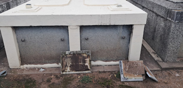 Banderaló: importante robo de placas y floreros en el cementerio, se llevaron más de 100 unidades