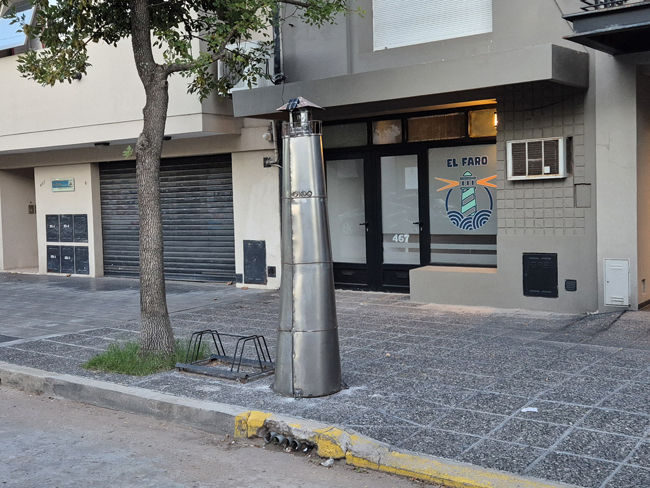Instalaron un faro en una de las veredas céntricas de General Villegas, su constructor tiene 16 años