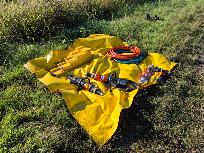 El auto quedó destruido, principalmente en el frente e interior donde los comandos se desplazaron hacia los asientos. Tras varios minutos de intenso trabajo, y con el uso de herramientas neumáticas, los bomberos de Piedritas y Villegas lograron rescatarlo sin mayores inconvenientes.