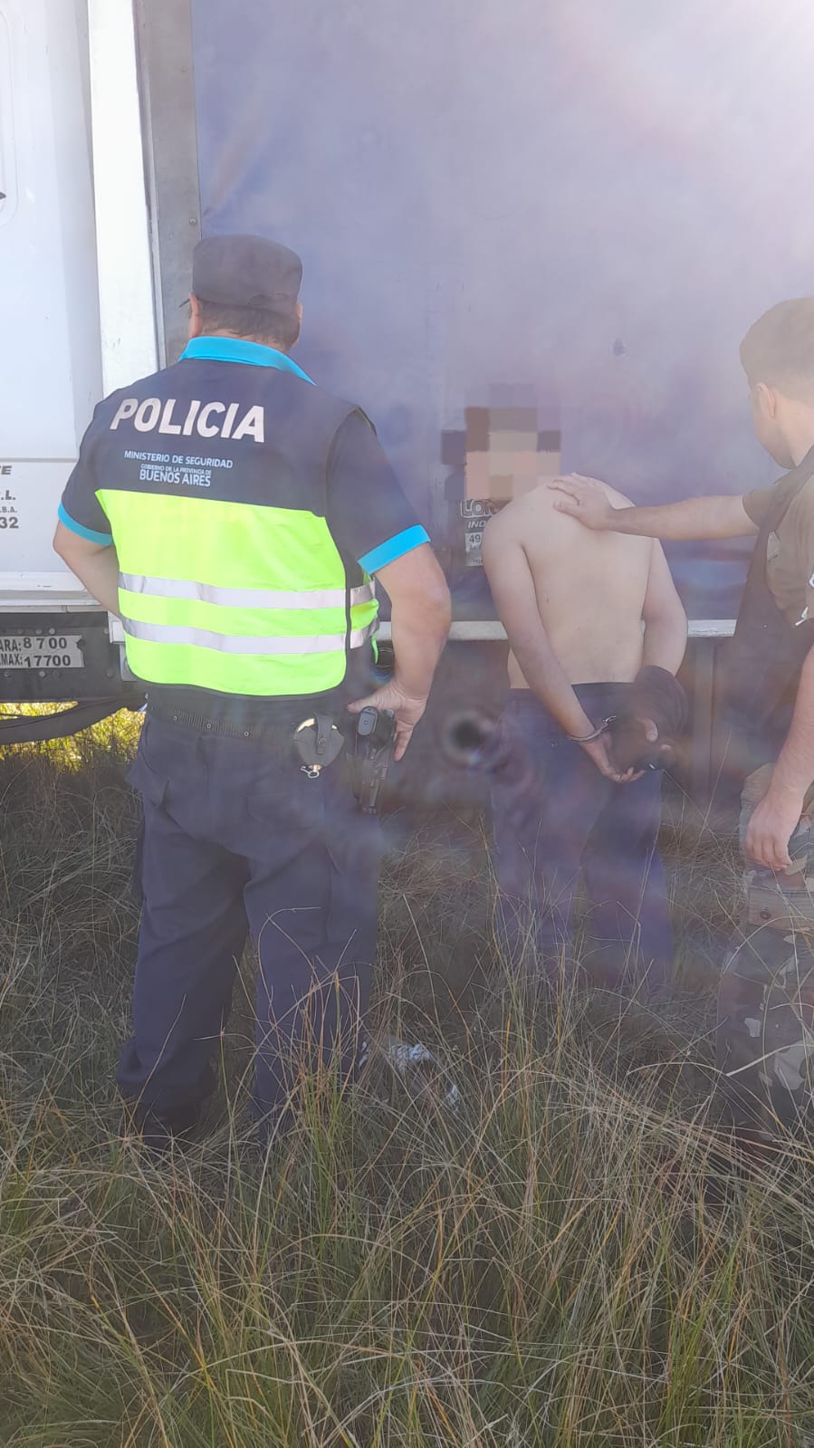 En el lugar, rodeado, fue aprehendido y puesto a disposición de la justicia. Se le realizó el test de alcoholemia, dando negativo; no obstante la autoridad judicial determinó la extracción de sangre para descartar o confirmar si se encontraba bajo los efectos de alguna droga. El camión y el sujeto contaban con toda la documentación obligatoria para circular, al día.