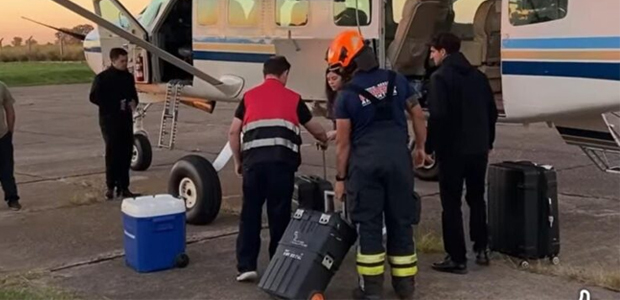 “La dotación aguarda la llegada del avión sanitario y realiza prevención en el aterrizaje. Luego se aguarda a que el personal médico descienda el material del INCUCAI para ser transportado hacia el hospital local”, informaron los bomberos.