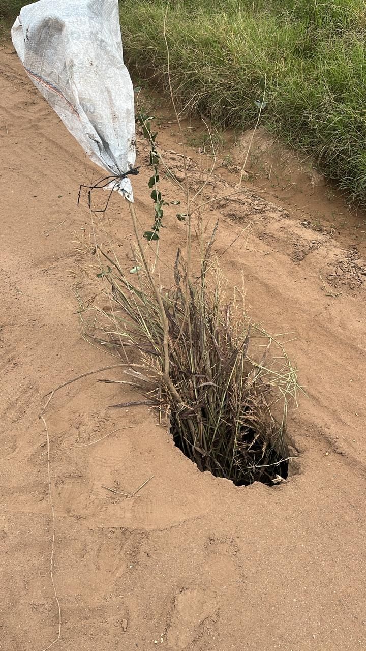 En el camino 050-15, camino a Santa Regina, saliendo de Cañada Seca a unos metros, se ha abierto un pozo en una de sus alcantarillas.