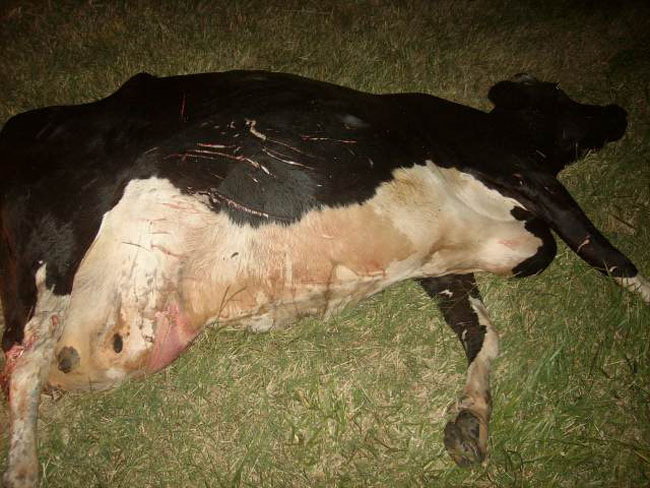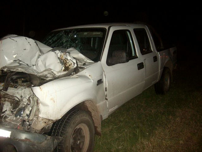 En la noche del sábado una camioneta embistió un animal vacuno en la Ruta 188