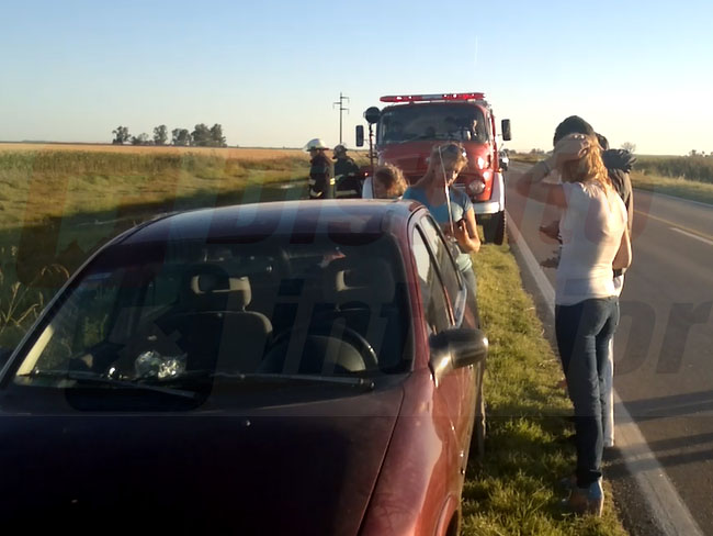 Un Volkswaguen Bora (GRD 036), condicido por Oscar Julián de Venado Tuerto (Sta. Fé), circulaba en dirección General Villegas – América cuando, al parecer por esquivar uno de los tantos pozos que presenta la traza, que finalmente no habría podido evitar, ya que habría sido necesario el cambio de la rueda delantera izquierda; se roza con otro automóvil, un Corsa (BMC 916), que lo hacía en sentido contrario y era conducido por Alicia Lamanno, domiciliada en calle Castelli 1504 de nuestra ciudad. Producto de la maniobra, se rozan. El Bora terminó dentro del préstamo, a unos cuantos metros de la ruta. Afortunadamente los daños fueron menores, sin consecuencias para sus ocupantes.