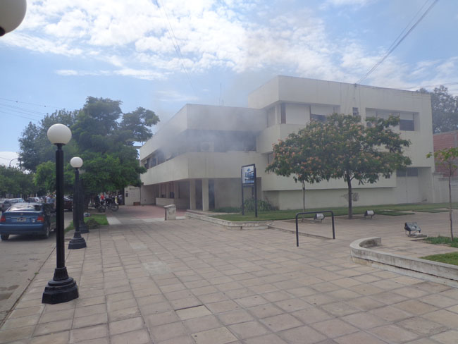 El incendio, de características espectaculares, se produjo en la planta alta del edificio donde funcionan las oficinas de ARBA, allí también lo hacen el Consejo Escolar, Inspección de Enseñanza, Jefatura Distrital, Juzgado de Paz, entre otros organismos.