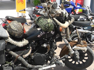 En este caso, cuando se dirigían rumbo a la provincia de Mendoza donde pasan las Fiestas, hicieron un alto en el camino en la estación de servcio Shell ubicada sobre la ruta 188 e ingreso a Coronel Granada donde pudimos charlar con ellos e interiorizarnos acerca del movimiento Rat Biker al que pertenece Ariel; prueba de ello es su moto, estratégicamente decorada con diferentes huesos y hasta una yarará.
