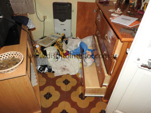 Una vez adentro revolvieron los armarios, roperos y cómodas, dejando diferentes elementos esparcidos.