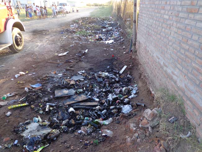El incendio se inició cerca de las 19:30 horas por causas no establecidas, aunque se sospecha de alguien que quiso limpiar el lugar, a pesar de que momentos antes había niños por el lugar y en principio se pensó que ellos lo habían iniciado. Esa es una postal repetida todos los días, los chicos y no tan chicos se ven atraídos por lo que la gente tira; comenta Guadalupe, una vecina, que amplía diciendo que se ve a gente que no es del barrio arrojando basura en un lugar que no es para eso. Paran autos y camionetas de imponentes modelos que podrían ir al basurero sin inconvenientes, pero no, les queda más cómodo hacerlo acá.