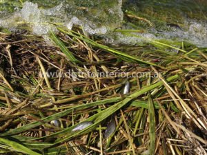 Desde la llegada del importante caudal que afecta a la localidad se ha observado la presencia de estos pequeños peces, los que en algunos casos han llegado hasta los cordones de las cuales cuando la masa hidrica alcanzó el casco urbano.