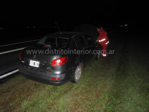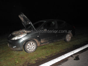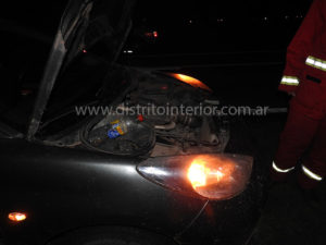 Tres personas viajaban procedentes de la vecina localidad a bordo de un Peugeot 207 propiedad de la familia Bengochea, cuando advirtieron un intenso humo saliendo del motor y fallas en el rodado.