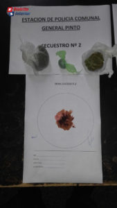 Esta mañana alrededor de las 7:00 hs. una de las cuadrículas de la Fuerza Pública realizaba las habituales recorridas por la intersección de las calles Iacianci y General Villegas cuando observaron a un hombre corriendo al que interceptaron y luego de una requisa en presencia de un testigo, encentraron entre sus pertenencias 4 envoltorios de nylon color verde los que contenían una sustancia color blanca similar cocaína y 3 envoltorios de nylon color blanco con aparente marihuana en su interior.