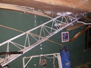 La antena de FM Radiorama cayó sobre parte de la sede del Club Barrio Norte.