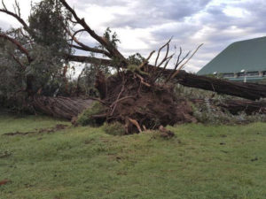 Se reportaron voladuras de techos y en cuanto a la caída de árboles se pudo observar problemas en gran parte de la ciudad, tanto árboles de menor porte como ejemplares añejos no resistieron al vendaval.