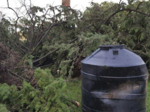 La tormenta desatada en la noche de este miércoles causó voladura de techos, caída de árboles y postes del tendido eléctrico. No hubo que lamentar heridos. Una situación similar, pero de menor magnitud, se había vivido días atrás en la cabecera del partido.