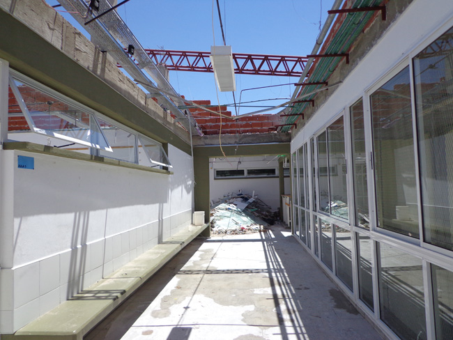 La obra contempla la realización del techo a nuevo, incluido el del SUM, que permaneció en su lugar aunque con algunas consecuencias; en este caso por seguridad, también está dentro de lo presupuestado; el cielorraso, instalación eléctrica, reparación de alarmas, la escuela contaba con un sistema contra incendios de caños, accesorios y sensores que será restituido, además de las convencionales contra robo; de la misma manera las aberturas y todo aquello, estructuralmente afectado.