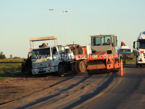 Ayer por la mañana, casi 24 horas después que un acoplado terminara volcado, con su carga desparramada sobre el asfalto y el tránsito interrumpido a raíz de una del estado que ese tramo presenta, la empresa Marcalba, mediante Avinco, al parecer una empresa de capitales zonales contratada por ésta, lleva adelante la tarea.