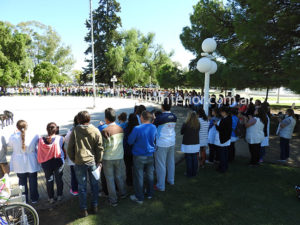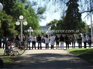 Tal como se decidió ayer, el frente gremial local realizó dos Asambleas Abiertas en la Plaza Principal, una por la mañana la otra por la tarde, donde analizaron la situación, los próximos pasos a seguir y culminaron abrazando el centro del lugar entonando las estrofas del Himno Nacional.