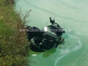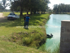 Ocurrió alrededor de las 12:00 hs. en el Parque Municipal General José de San Martín de General Villegas hasta donde llegaron los efectivos policiales ante un llamado que alertaba de la presencia de una moto dentro de la laguna chica ubicada frente al SUM.