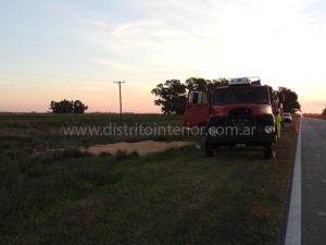 El rodado, un camión MAN Diesel propiedad de Marcelo Luzuriaga circulaba en dirección Villegas – Ameghino cargado con maíz, conducido por Raúl Reynoso cuando al parecer la presencia de un tractor que tiraba un implemento agrícola lo obligó a realizar una maniobra que lo hizo bajar a la banquina con las consecuencias que están a la vista.