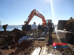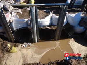 El caudal de agua fluirá por tres tubos de un metro de diámetro lo que permitirá descomprimir la presión que en estos momentos la masa hídrica ejerce sobre esa zona, inclusive pasando en gran cantidad sobre la cinta asfáltica en estos momentos.