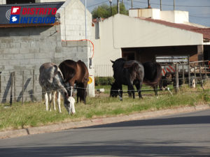 La escena tan propia de nuestro entorno, sorprende porque resulta, a pesar de ello, inusual para la ciudad ya que los equinos están perimetrados por un alambre de boyero (desconocemos si tiene carga) en un improvisado pero bien delineado corral.