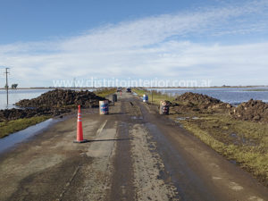 En los alrededores del corte se advierte una importante bajante del agua sobre la calzada que a pesar de ello aún permanece.