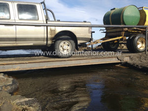 Se colocó un puente de acero construido en el Corralón Municipal, utilizado en estos casos. Por allí se permite el tránsito de vehículos chicos y medianos hasta la colocación de los tubos alcantarilla que se produciría en las próximas horas.