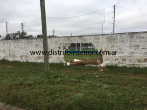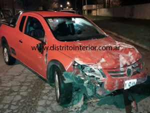 Una camioneta Volkswagen Saveiro, por causas no establecidas impactó contra el tapial provocando el agujero que se observa en las imágenes con consecuencias materiales para el rodado.