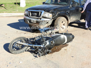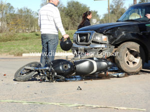 Ocurrió cerca de las 15:40 hs. entre una moto Motomel Sirius 200 cc. y una pick up Ford Ranger.