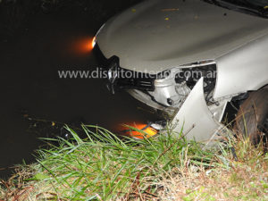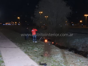 De acuerdo a los primeros datos, el auto circulaba en dirección al paso a nivel de la calle Roca (el que conduce al Hospital) cuando al parecer de frente lo hacía otro automóvil realizando de zig zag lo que obligó a una maniobra brusca saliéndose de la calle para subir en la vereda y caer dentro del profundo zanjón, quedando en la posición que se lo observa.