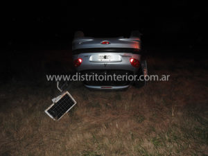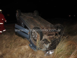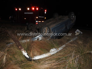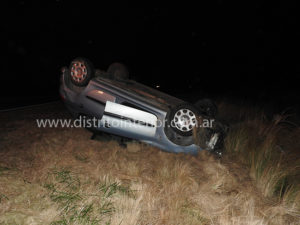 Producto del impacto el rodado, Un Peugeot 207 quedó sobre la banquina, a escasos metros de la cinta asfáltica totalmente invertido, pudiendo salir el conductor por sus propios medios.