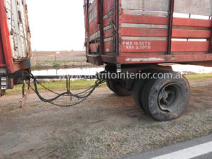 El rodado mayor que circulaba en sentido contrario sufrió la deformación de dos de sus llantas, la rotura de un neumático y el quiebre de la lanza.