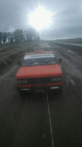 Esta pick up, modelo 1996, es de color rojo, dominio AKI 073, tiene una calcomanía en el parabrisas con la inscripción “Tecnicagro Service”.