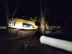 En estos momentos, la maquinaria perteneciente a una empresa local trabaja en el canal que corre paralelo al acceso al cementerio luego que se detectaran tapones en el mismo, producto de la obra de colocación de un tubo de gran tamaño por parte de ABSA la que permitirá en un futuro escurrir los líquidos cloacales de la planta depuradora que próximamente se pondría en movimiento.