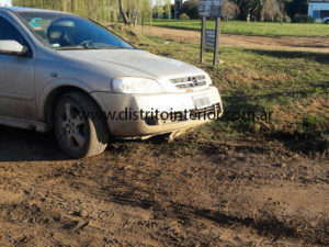 El día amaneció con este auto, un Chevrolet Astra sobre la calle De María a metros de la ruta 188 en el barrio Provincias Unidas.