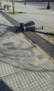 Las imágenes fueron publicadas esta mañana por una vecina de nuestra ciudad que encontró sobre la calle Moreno casi Sarmiento un canasto de la basura arrancado y tirado en el piso y en San Martín casi Rivadavia una planta sacada de su maceta y arrojada en la vereda.