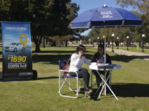 Desde este mediodía dos asesoras de venta de la firma con asiento en La Pampa se encuentran en la Plaza Principal sobre calle San Martín y Rivadavia para ofrecer la oportunidad de llegar al 0 km de la manera más conveniente y segura.