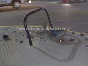El conductor, un hombre de unos 88 años, identificado como «Cholo» García, domiciliado en la calle Moreno entre Sarmiento y Pueyrredón, dobló desde Berutti hacia Moreno calculando mal el ángulo, impactando contra las barandas de la rampa, causando daños en la parte delantera izquierda del Nissan Sentra en el que se movilizaba.