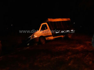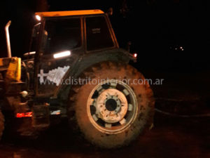 Hoy, intervino personal municipal con un tractor del estado que lejos de lograr sacarlo, provocó la rotura propia de las maniobras realizadas sobre la traza totalmente embarrada.