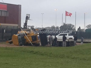 General Villegas: Volcó una retro pala cuando era bajada de un carretón