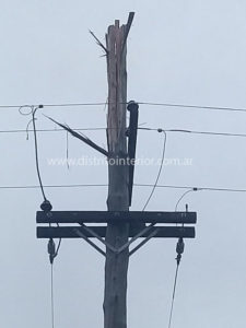 Afortunadamente no se registraron mayores inconvenientes ni personas alcanzadas por los restos de madera que se desprendieron, tampoco se vio afectado el servicio eléctrico por el momento.