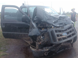 El accidente se produjo ayer cuando la camioneta Chevrolet S10 en la que se movilizaba la mujer junto a la niña intentaba cruzar la ruta desde el acceso hacia un camino vecinal; en ese momento por la traza nacional se desplazaba en dirección tejedor – Gral. Villegas la Ford F 100 conducida por Roberto Heraldo Villegas a quien acompañaba Sergio Manfredi, ambos de Florentino Ameghino.