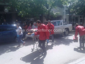 Esto produjo la inmediata caída de los dos ocupantes, Liliana Elizabet Ferreyra, de 24 años y un niño de 7, ambos trasladados al Hospital por Bomberos, quienes sufrieron golpes de diferente consideración. (Distrito Interior agradece a Carlos Ferreyra y Fabian Fernandez)